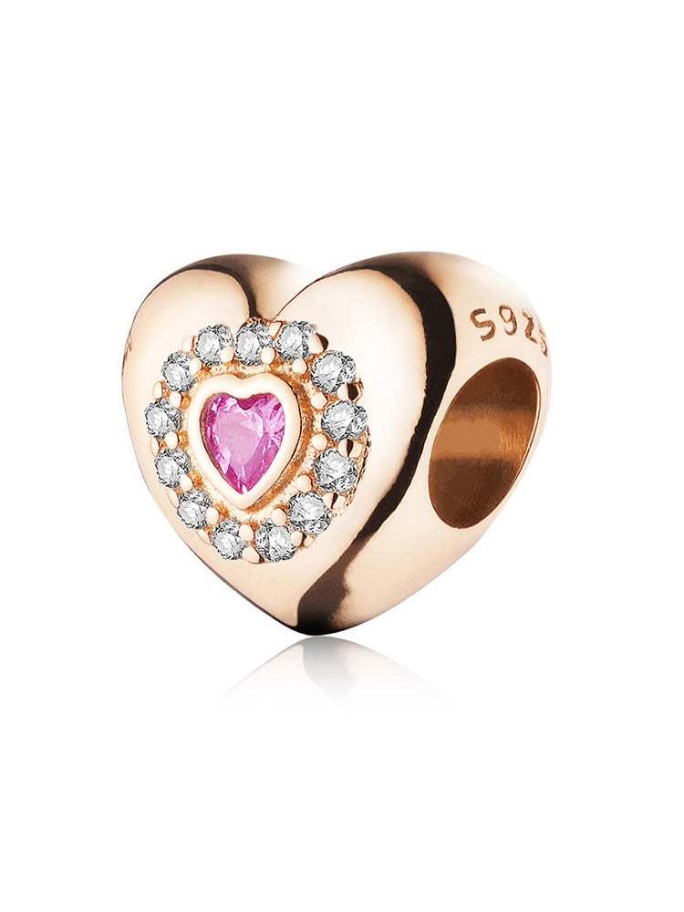 Dije de oro rosa con halo de corazón ruborizado
