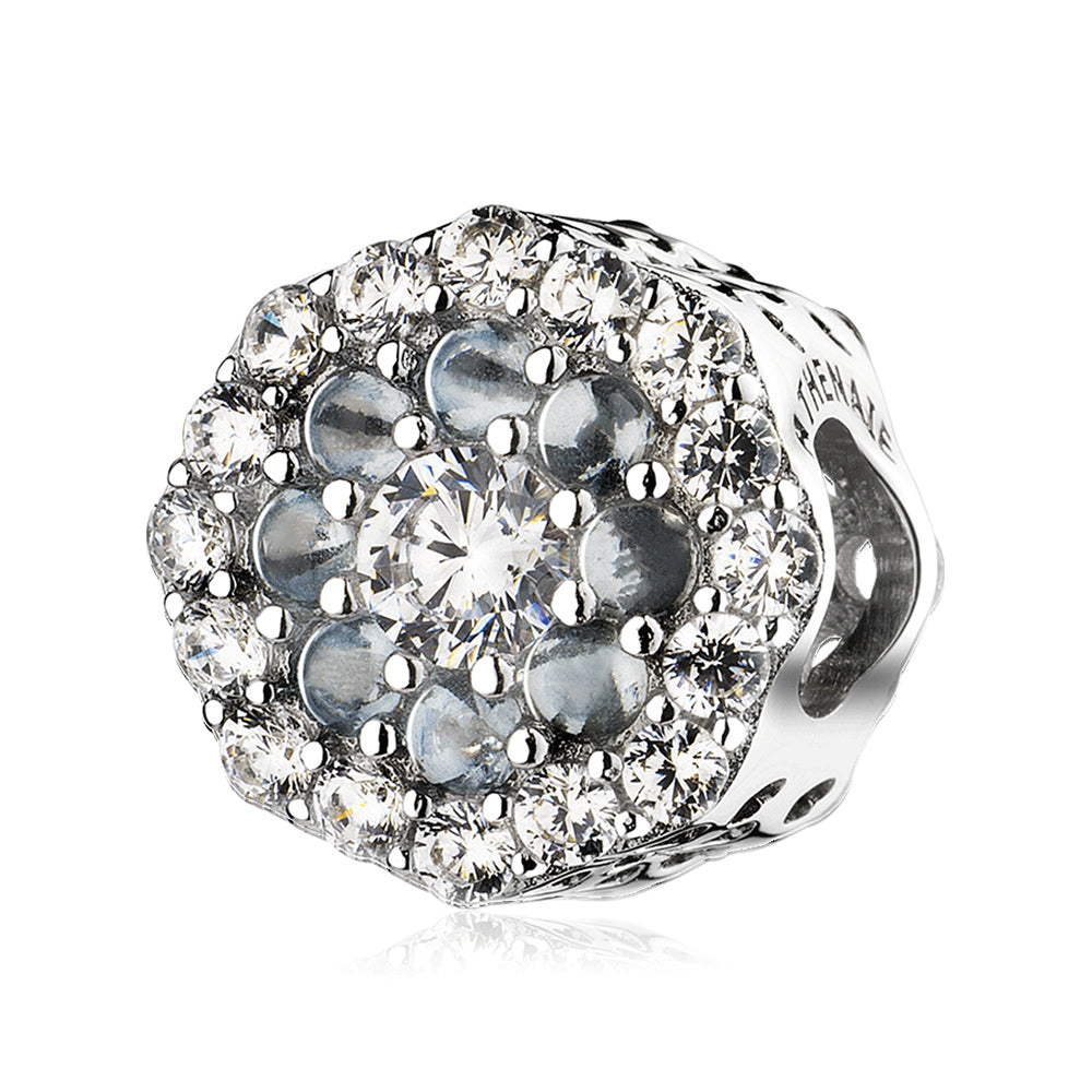 The Blue Halo Charm is inspired by the shimmering beauty of blooming flowers under moonlight, symbolizing elegance, serenity, and everlasting love. Sparkling blue cubic zirconia stones highlight the floral halo design, making this charm both timeless and sophisticated.