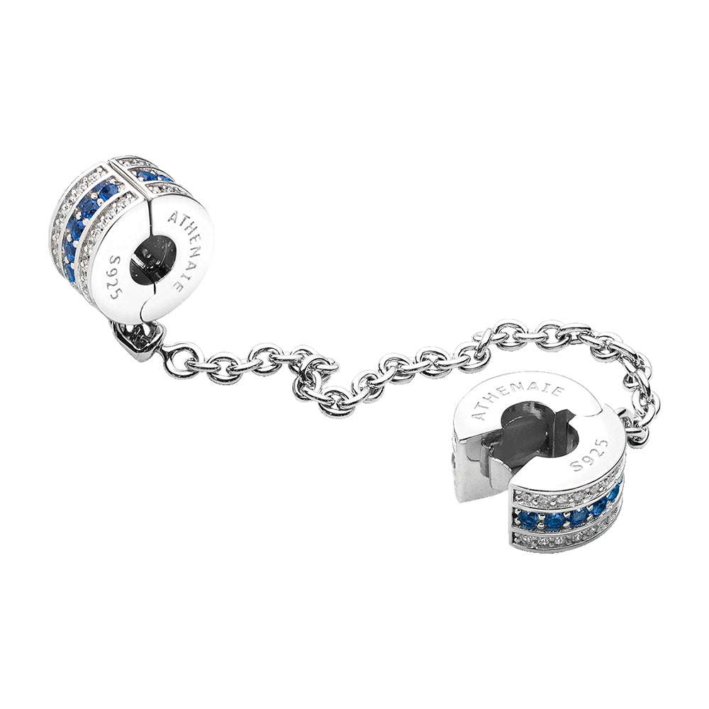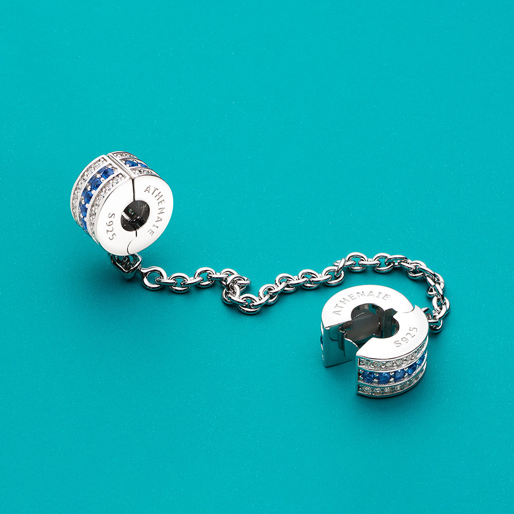 The Blue Haven safety chain is inspired by the tranquil elegance of the night sky over a calm ocean. The deep blue zirconia accents represent serenity and emotional depth, while the secure dual-clip design ensures both beauty and functionality. Like a protective embrace, this safety chain keeps your charms close while symbolizing trust, balance, and peace. It’s more than an accessory—it’s a guardian of your personal story.