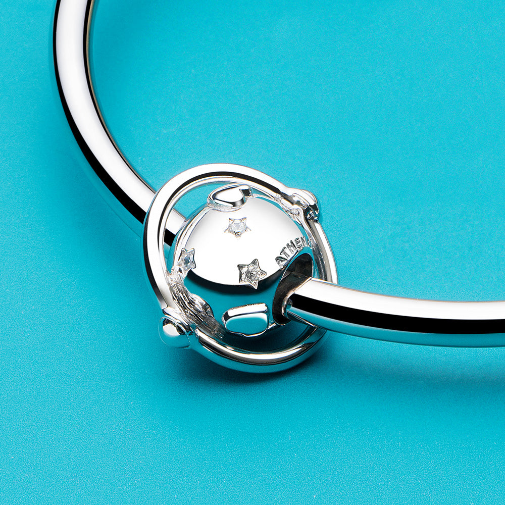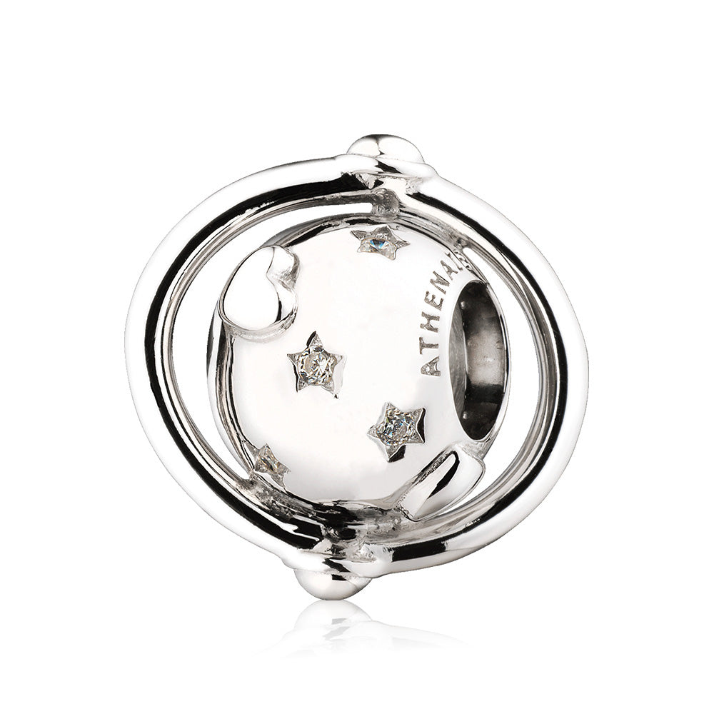 The Celestial Orbit Charm captures the mystery and brilliance of the cosmos with its intricate starry design, accented by sparkling 3A cubic zirconia. Made from 925 sterling silver with platinum plating, it represents infinite dreams, exploration, and a connection to the universe.