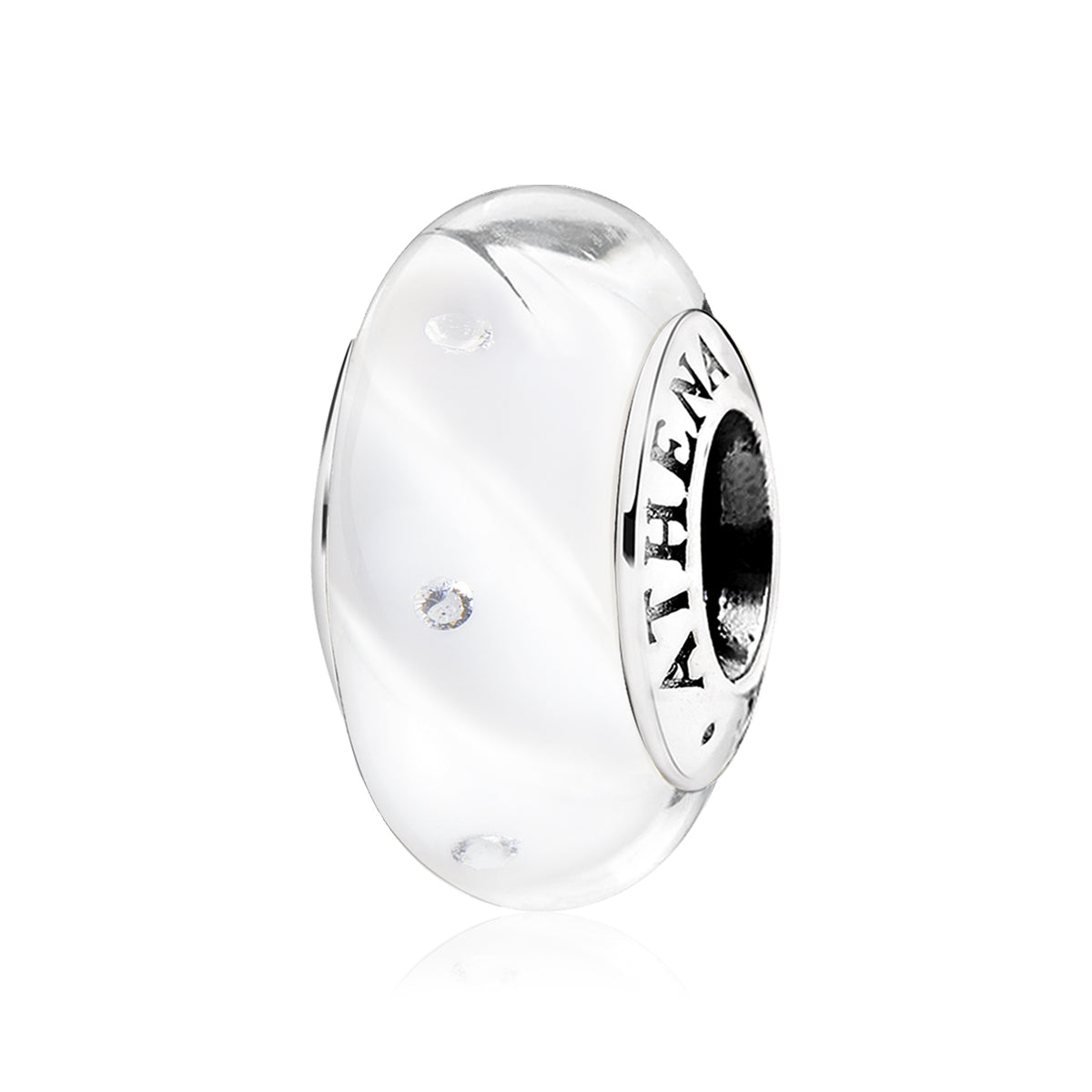 The Cloud Whisper Murano glass bead evokes the serenity of a soft morning sky. Its misty white and translucent blue swirls, paired with a pure silver core, reflect calmness, clarity, and a quiet kind of strength. Like a gentle breeze or a thoughtful pause, this charm speaks to the soul in a whisper—subtle yet deeply meaningful. A beautiful reminder to embrace inner peace, presence, and the poetry of stillness.