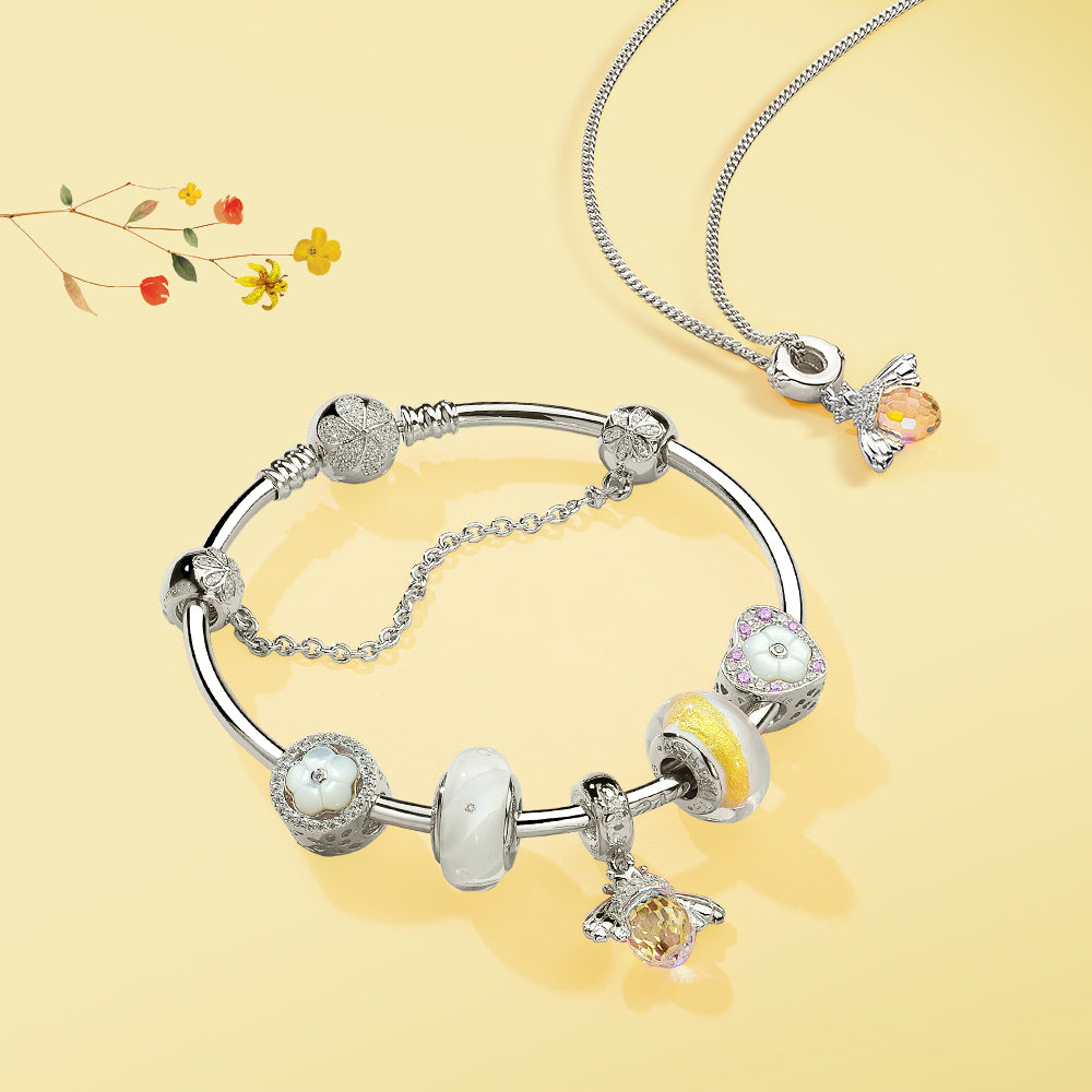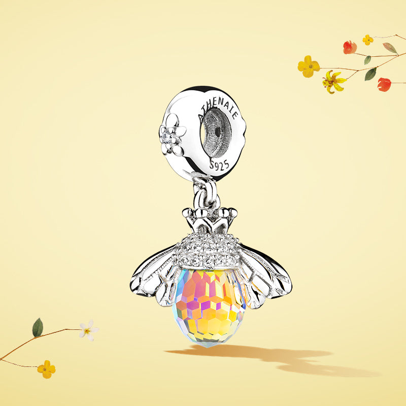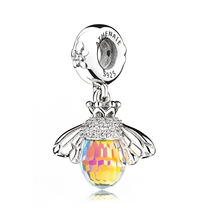Crystals Bee Pendant – Sterling Silver Charm for Bracelet or Necklace