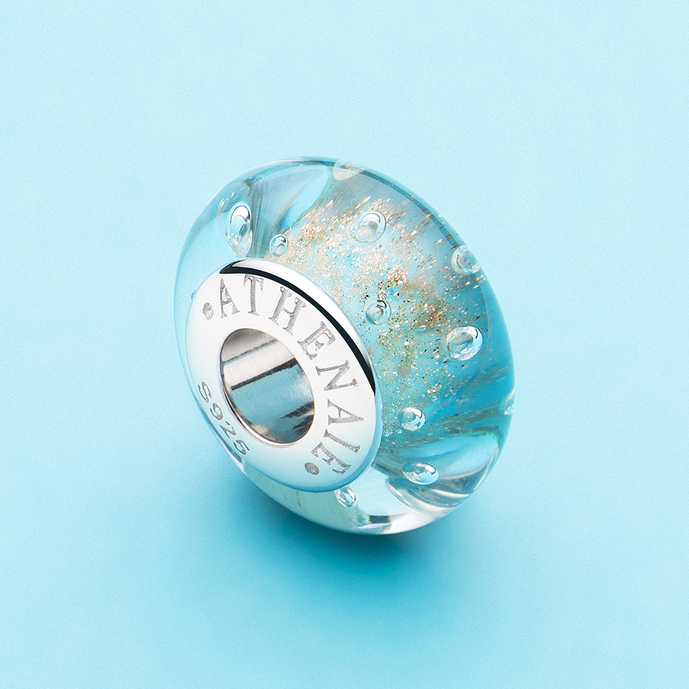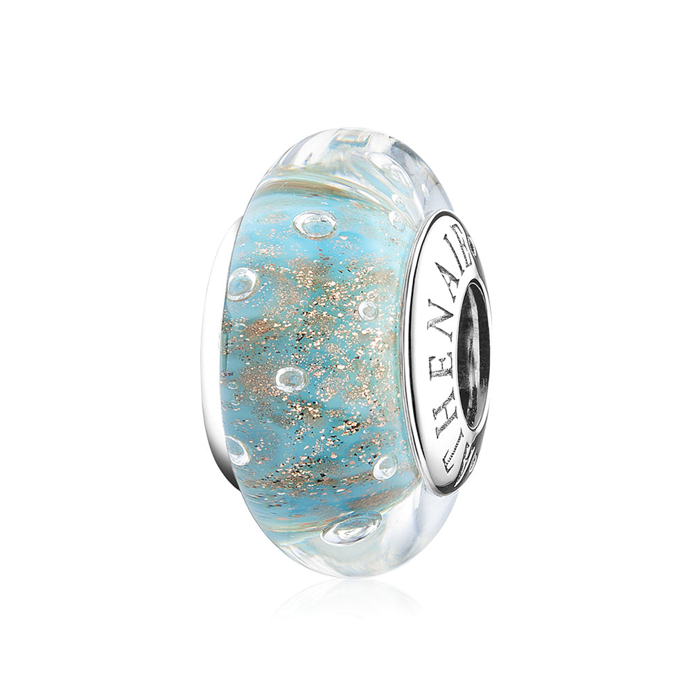 Golden Tide Murano Glass Charm Bead 925 Silver Core