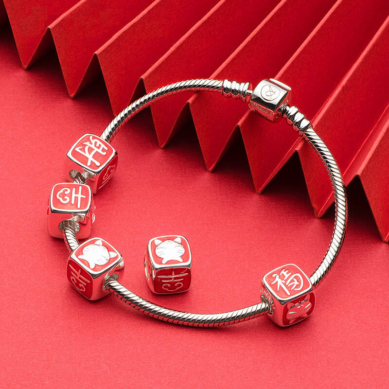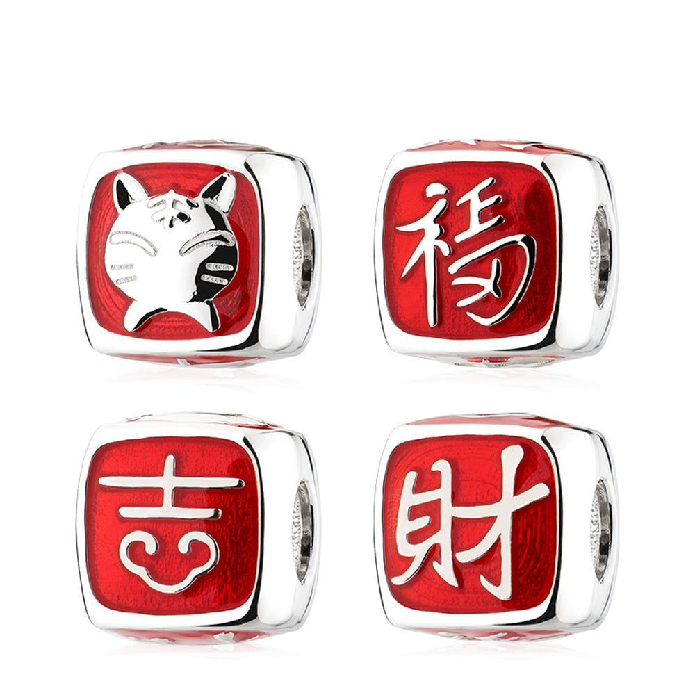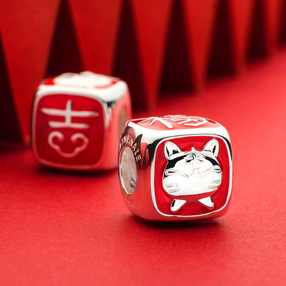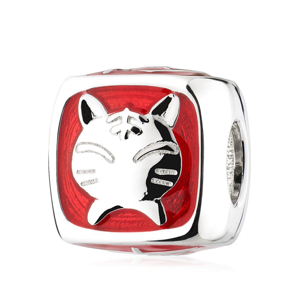 Lucky Tiger 925 Sterling Silver Enamel Charm Bead