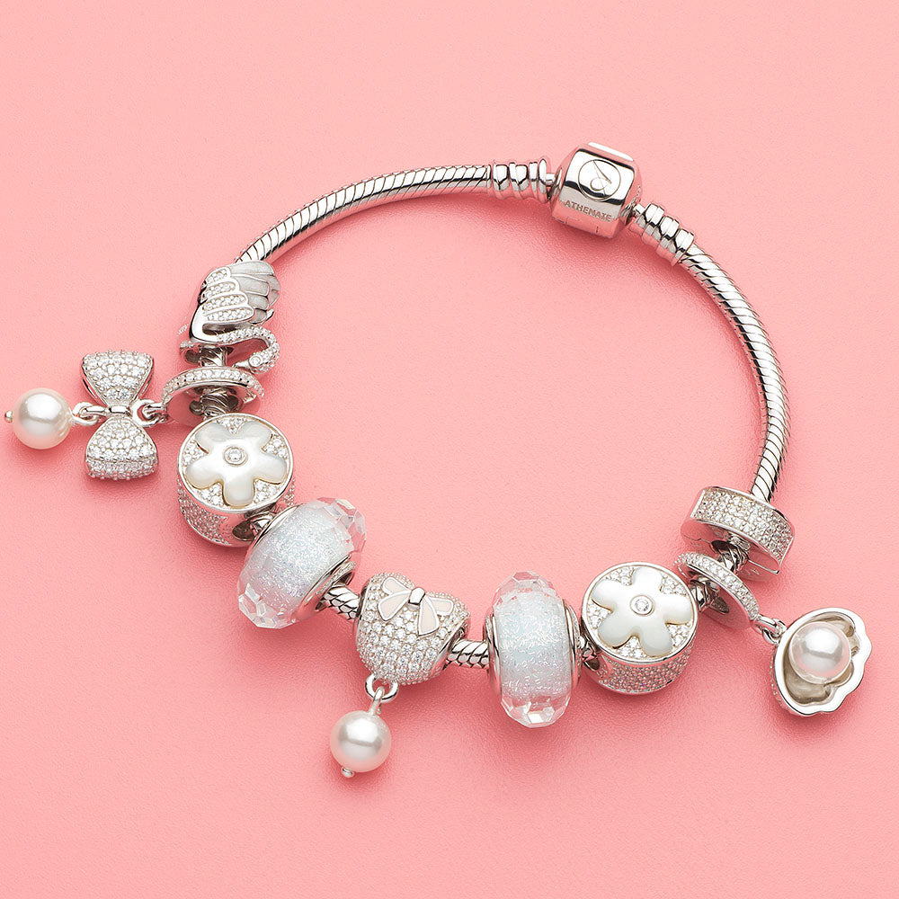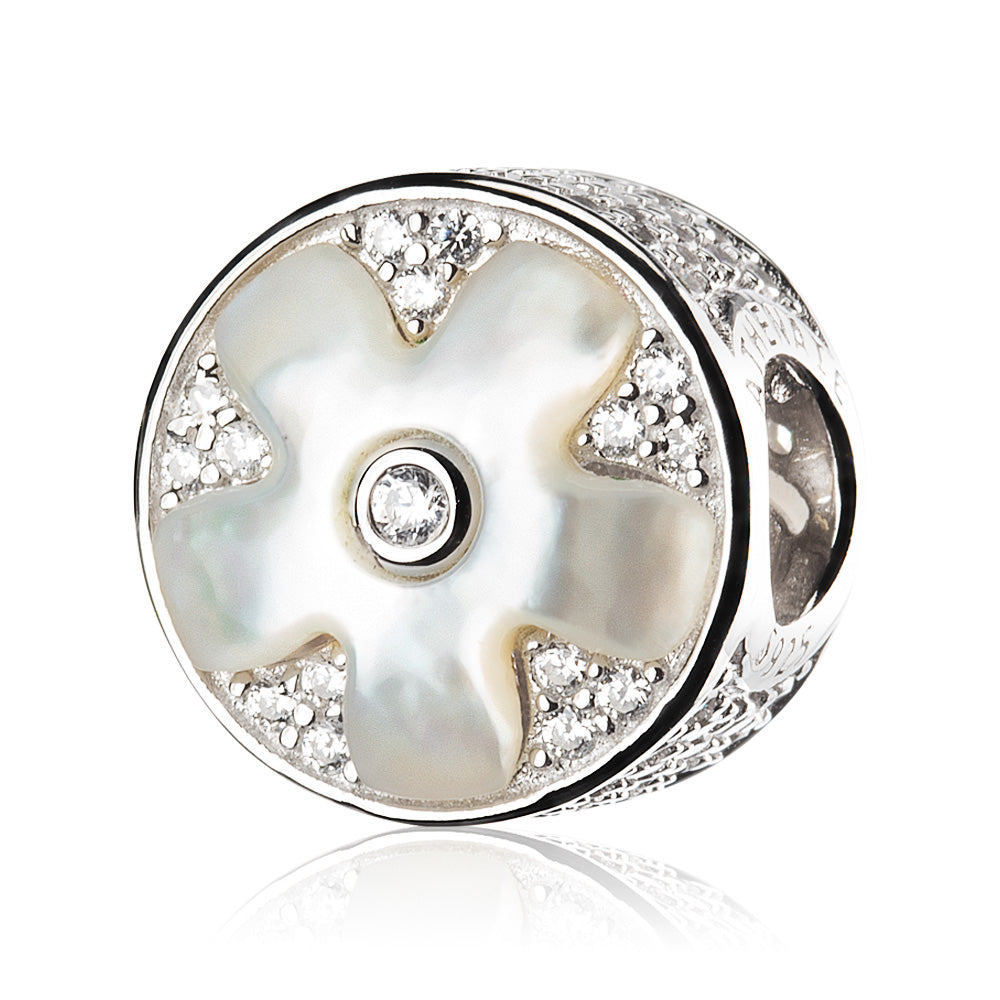 Moonlit Petal Charm Bead 925 Sterling Silver with Shell & CZ