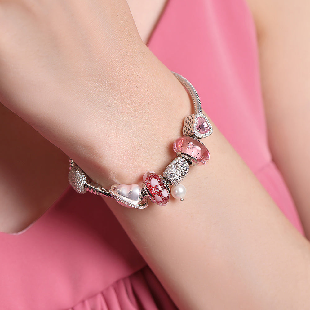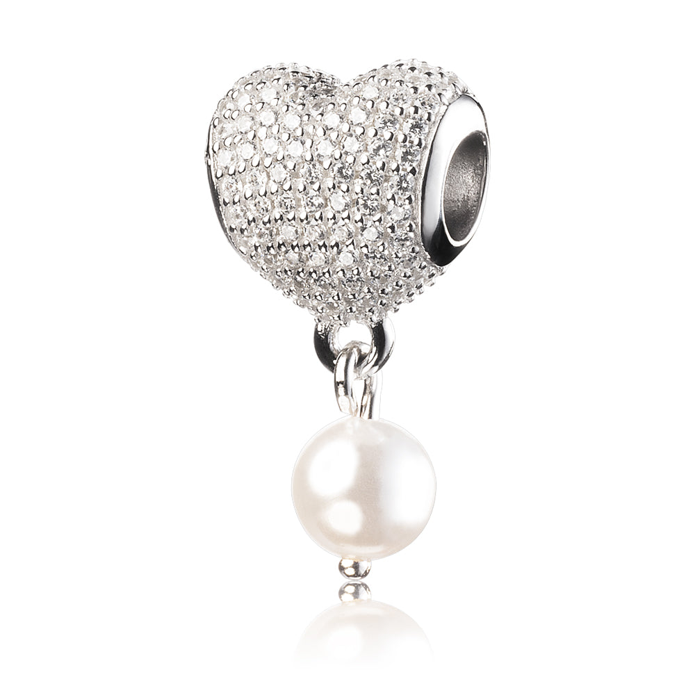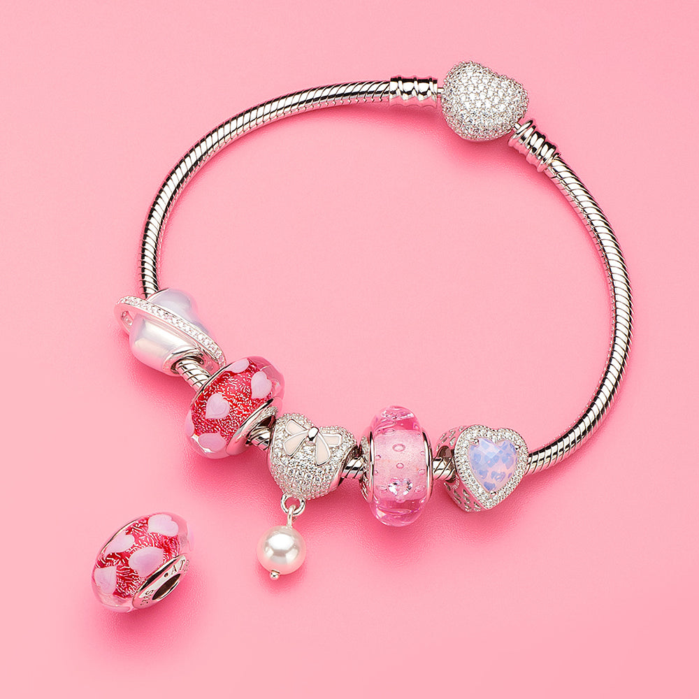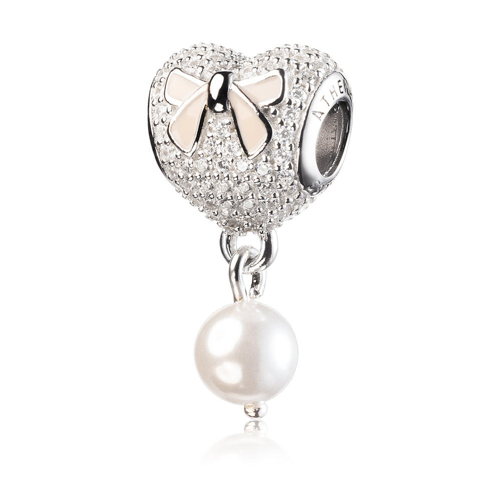 The Pearl Bow Heart Charm is inspired by the elegance of a bow and the purity of a pearl, symbolizing tenderness, love, and graceful beauty. The delicate pink enamel combined with sparkling cubic zirconia creates a romantic, timeless appeal.