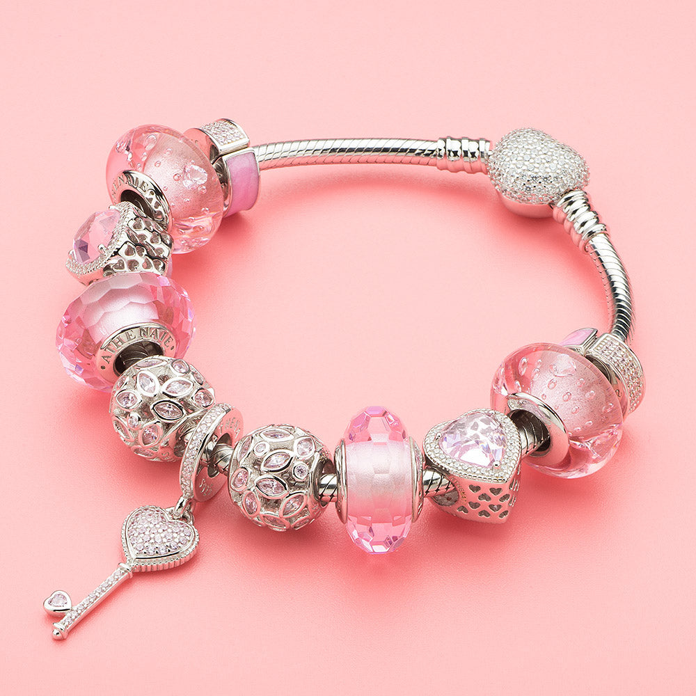 Petal Kiss 925 Sterling Silver Charm Bead with Pink CZ