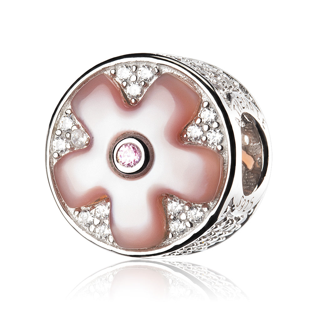 Petal Kiss Charm Bead 925 Sterling Silver with CZ & Shell