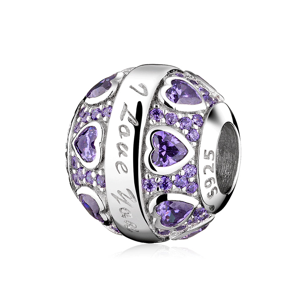 Purple Hearts Charm – Violet Whisper 925 Sterling Silver Charm Bead