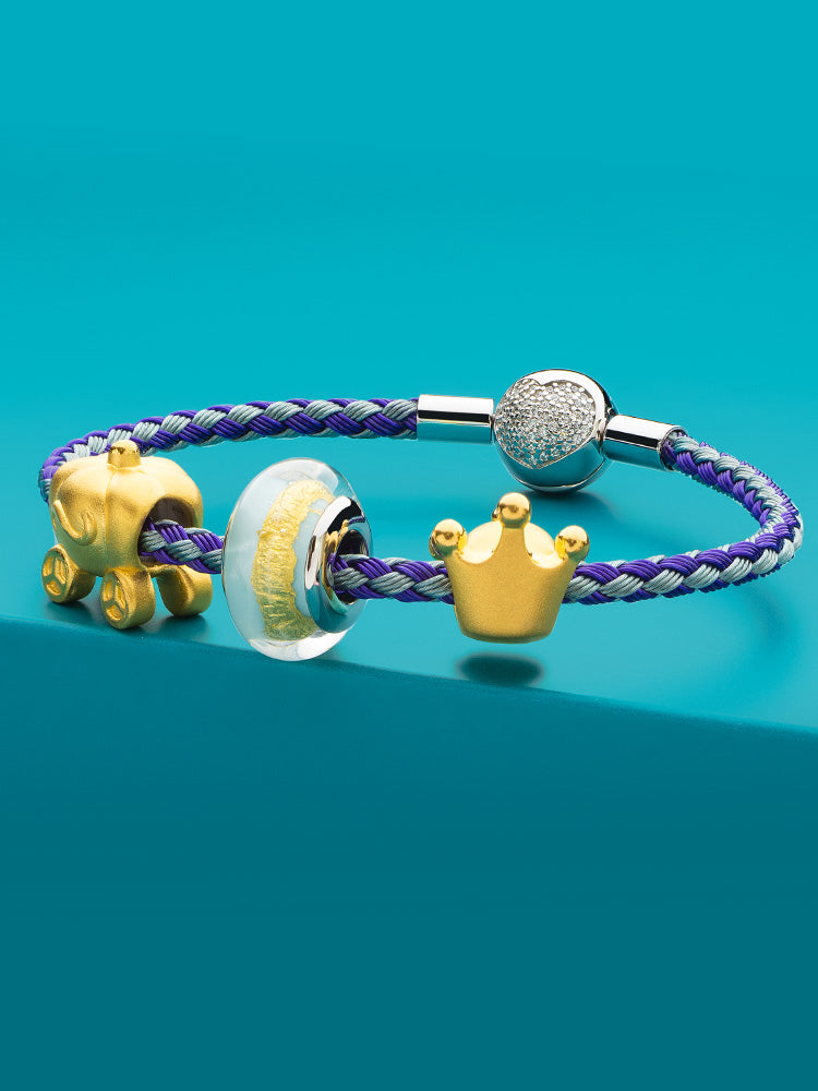 Purple Teal Braided Charm Bracelet with Sterling Silver Heart Clasp