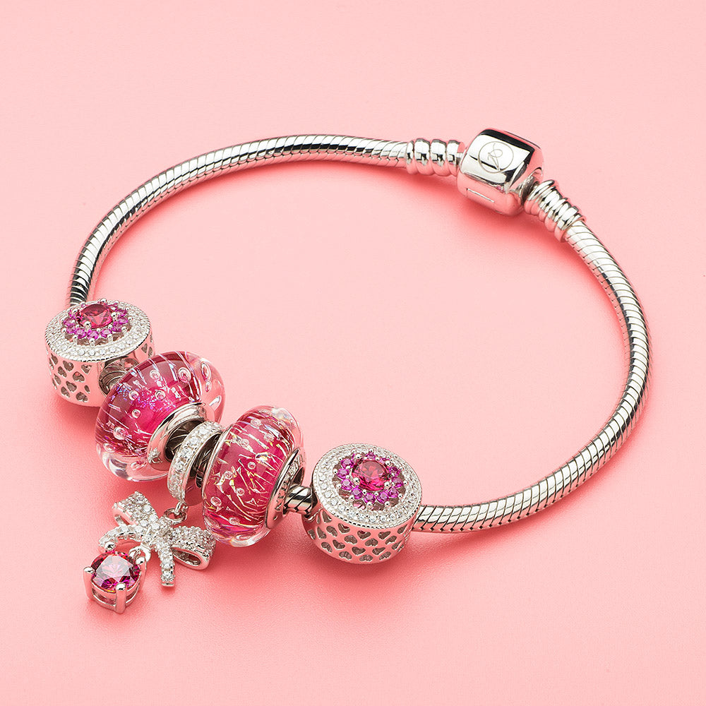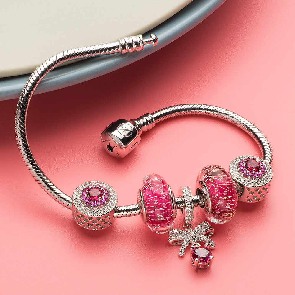Radiant Love 925 Sterling Silver Heart Charm Bea