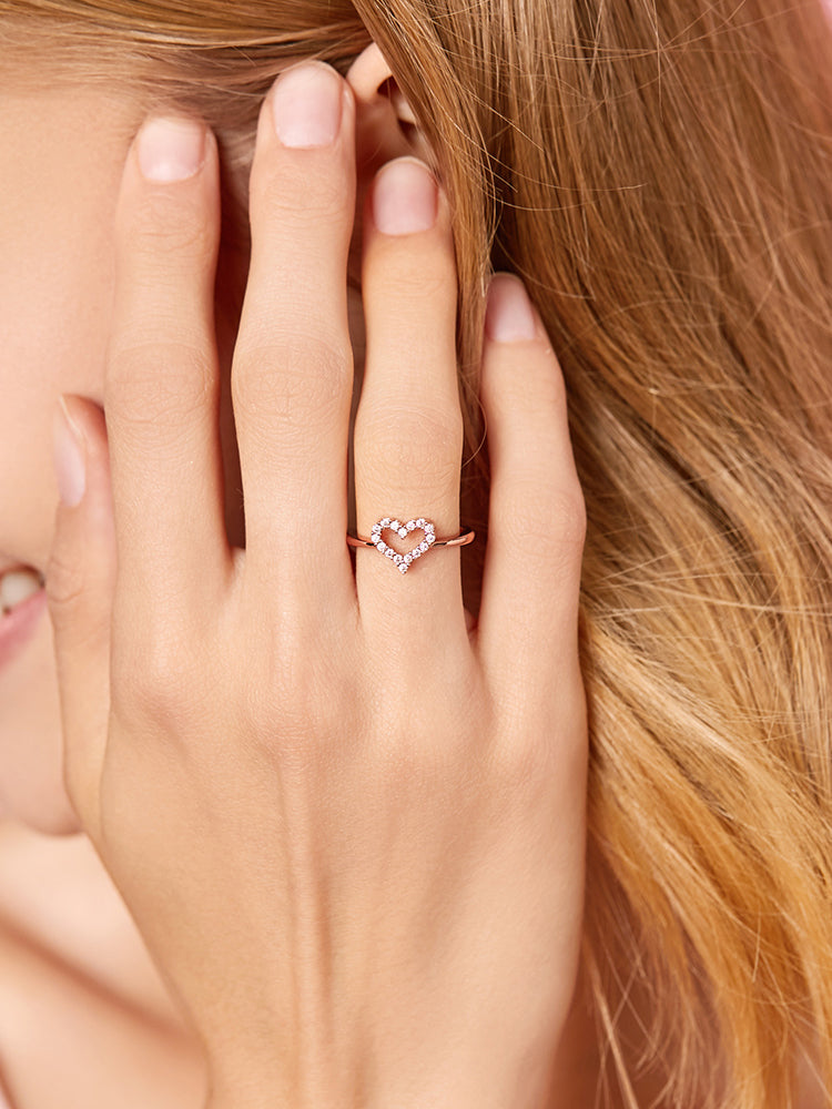 925 Sterling Silver Rose Gold Open Heart Ring