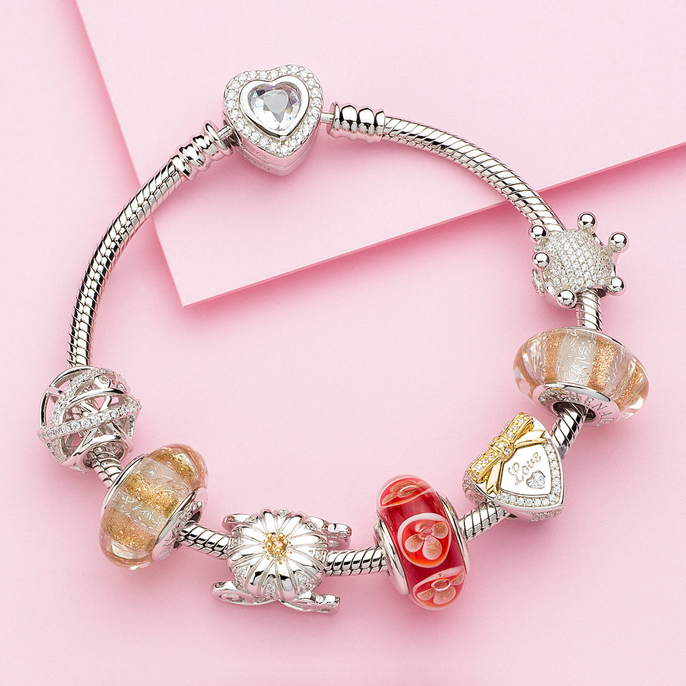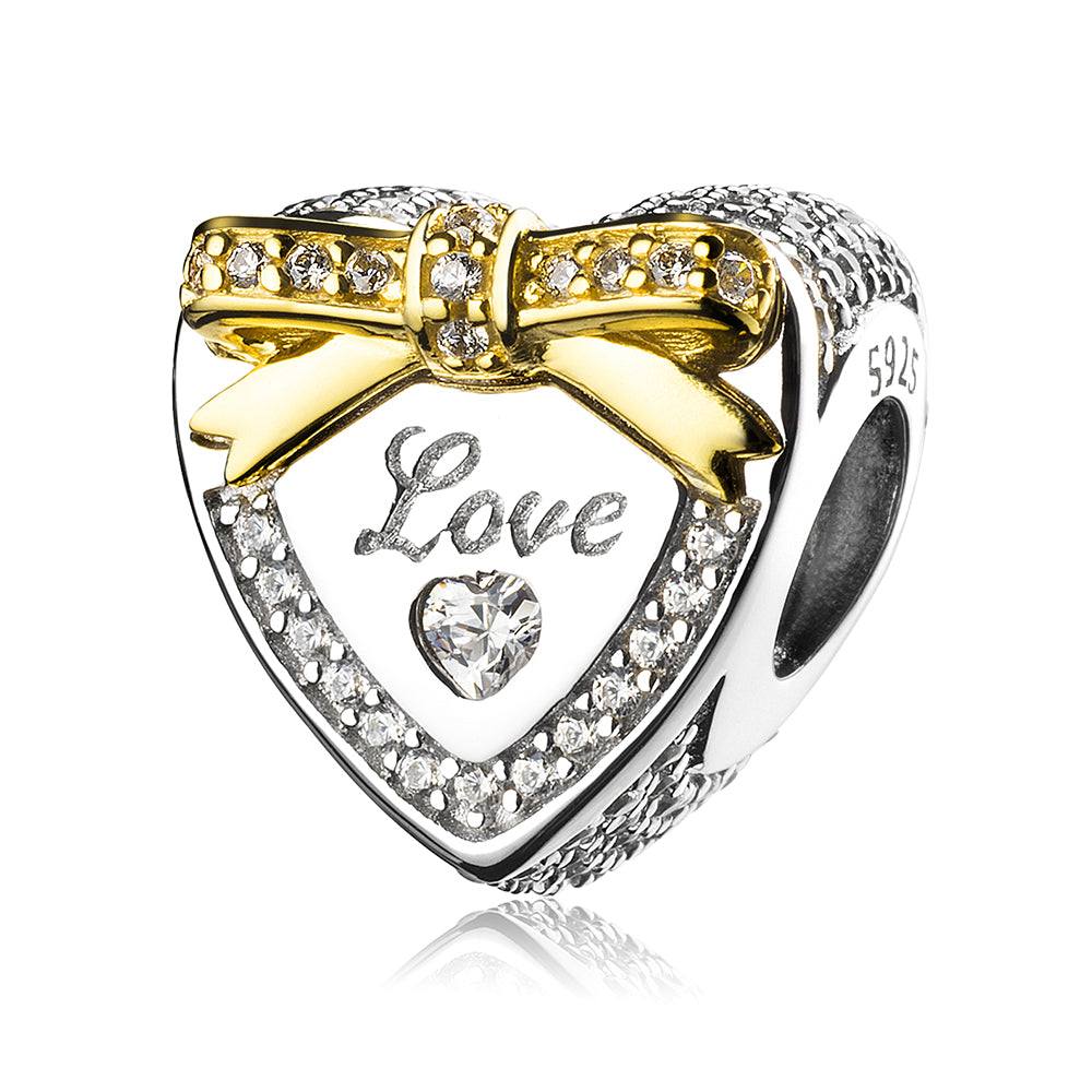 Crown Heart Charm Bead with Gold Bow