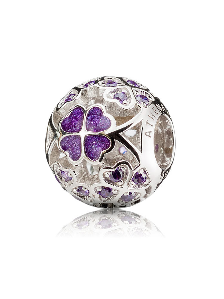 Pingente da sorte em prata de lei 925 com trevo violeta